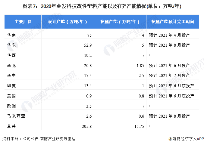 目前,金发科技改性塑料的总产能为205.8万吨/年,在建产能达到15.75万吨/年。