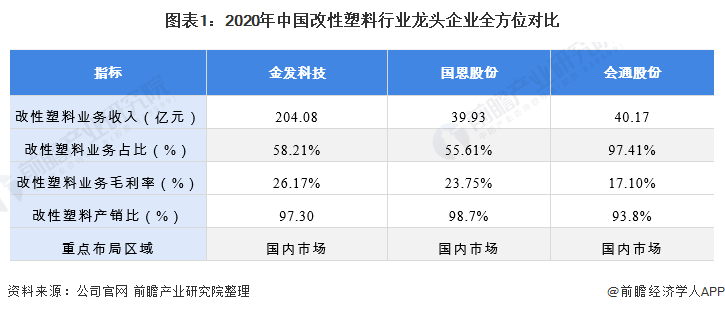 本文核心数据:金发科技以及会通股份、国恩股份改性塑料产销量、产销率、业务构成、研发投入、经营业绩